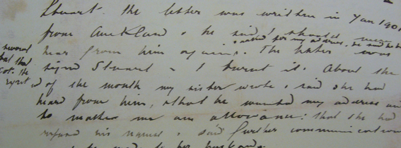 Mr Stuart … appeared gloomy. I asked him what was troubling him, was it a crime. I said this because he had often said he had done wrong and was not worthy of me and I could not think what it was. I asked him one or two things often said in a joke you have not been married before. He said nothing for some moments then said yes, I have a wife living. For a few minutes I refused to believe it then he said he was married in NSW to a Miss Lance.